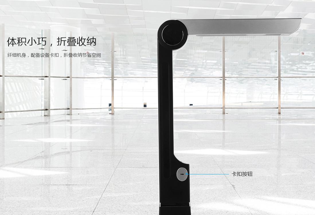 500万直立折叠式文稿拍摄仪,纤细机身,配备设备卡扣,折叠收纳节省空间。